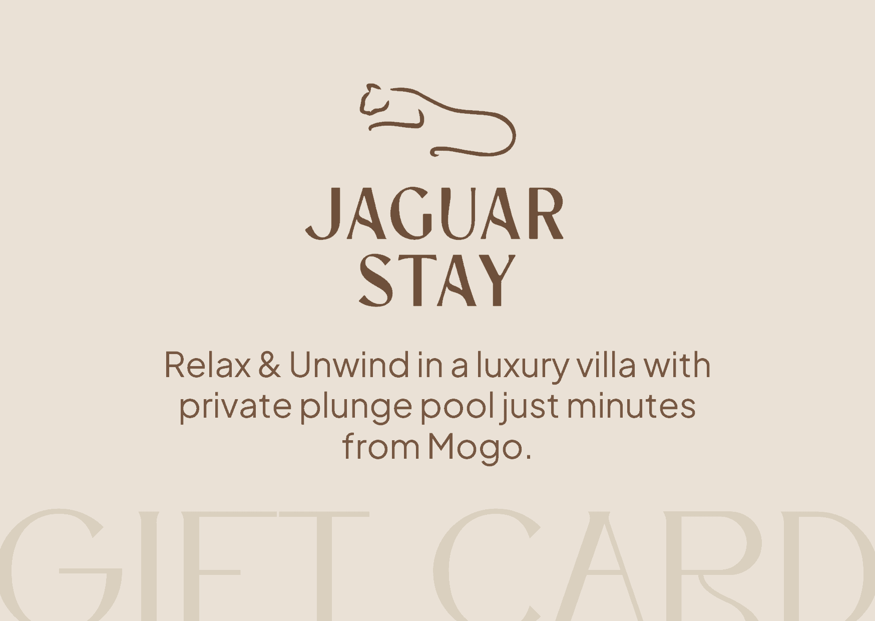 Treat someone special to a moment of stillness at Jaguar Stay — architecturally designed one-bedroom luxury villas nestled within the breathtaking beauty of 160 acres of Sunnyside Park in Mogo, New South Wales.  Perfect for birthdays, Christmas, anniversaries or simply to say “thank you”, our gift cards let your loved ones escape the noise, unwind on the farm, and rediscover the simple joy of doing nothing at all.